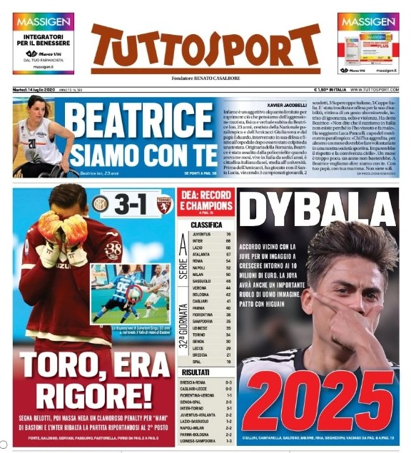 据意大利《都灵体育报》头版的消息,尤文图斯即将与迪巴拉续约至2025年,阿根廷人的年薪将会上涨至到1000万欧元。
