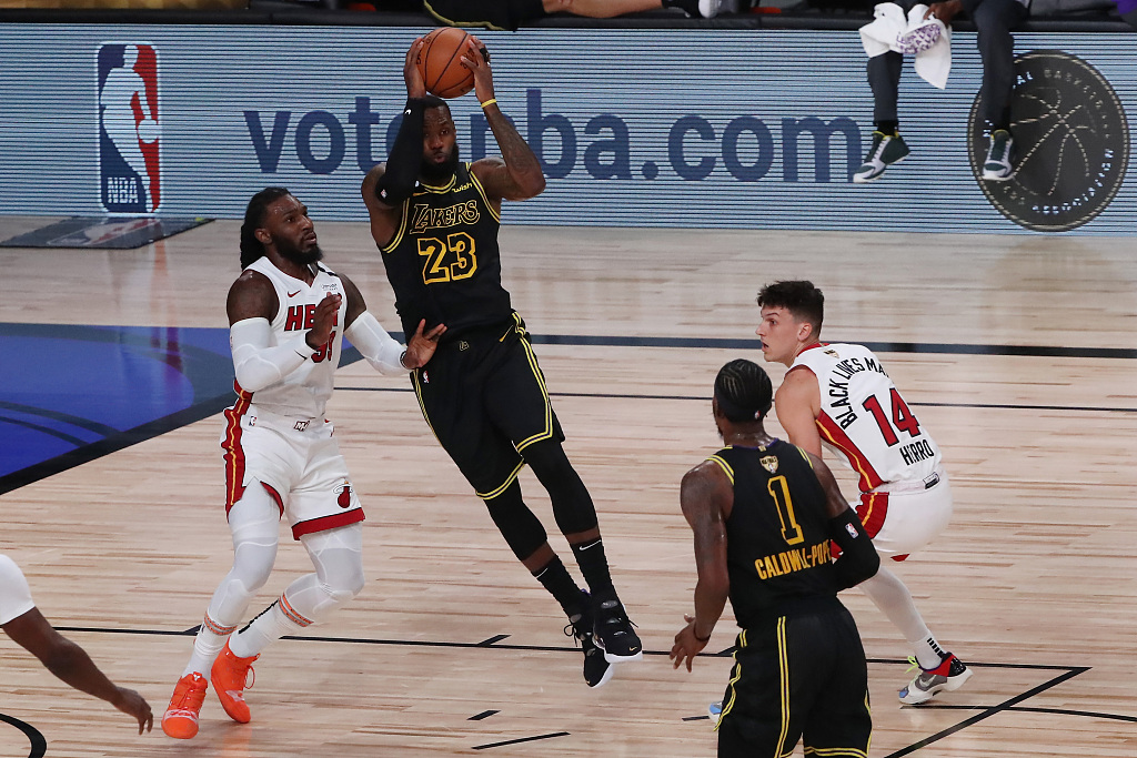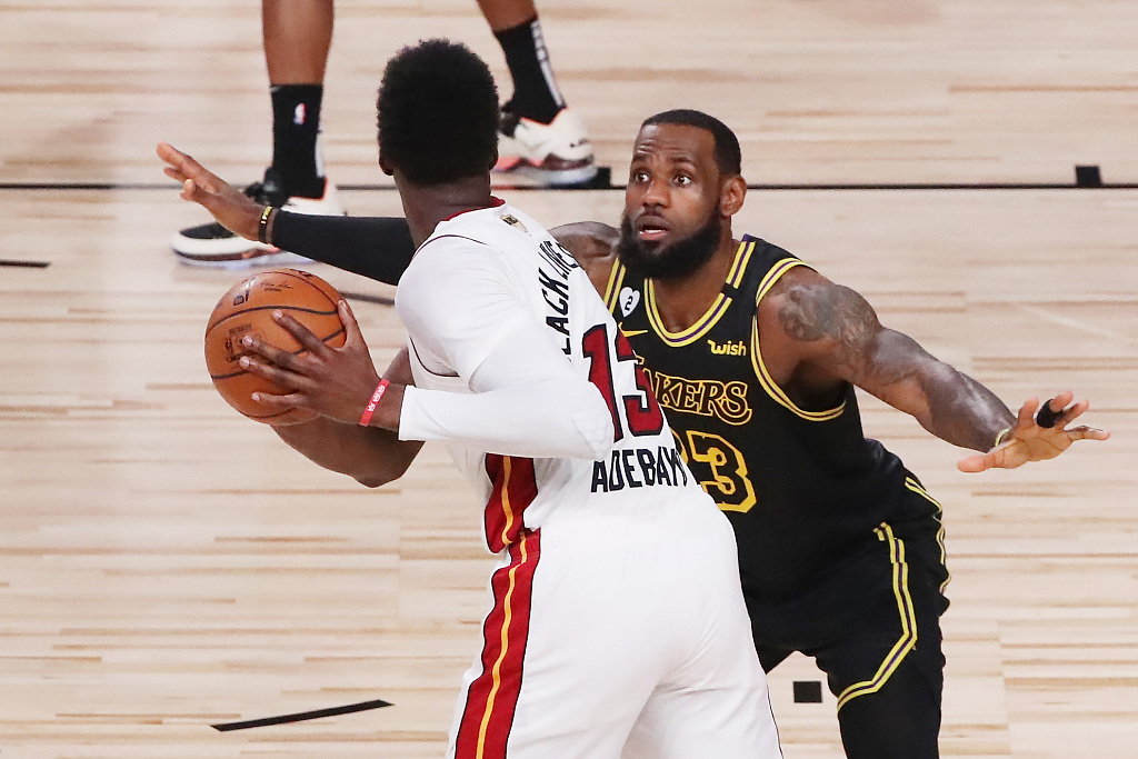 最后一节比赛,邓肯·罗宾逊开场命中三分。阿德巴约扣篮不中,湖人反击失误。阿德巴约篮下造莫里斯犯规两罚全中,热火93-82领先湖人11分。詹姆斯三分球再次命中,总决赛单场已经命中7记三分球!丹尼·格林外线也再次开张,三分命中,湖人88-93热火,将分差再次缩小至5分。戴维斯篮下造犯规两罚命中,随后纳恩外线三分命中,詹姆斯暴扣得手,热火96-92湖人。