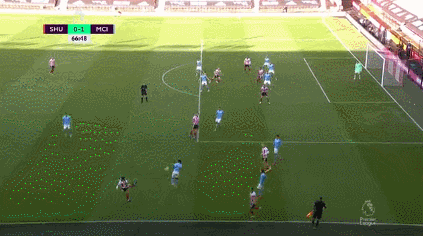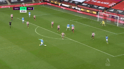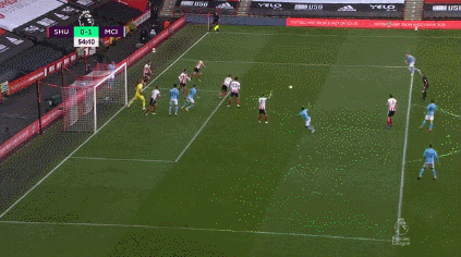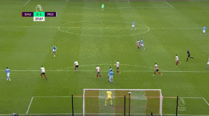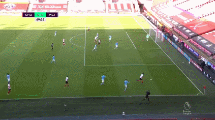 74' 斯特林接左路过顶直塞球后尝试倒三角传中,皮球打在谢菲联后卫身上反弹向球门方向,拉姆斯代尔再一次将危机化解在门线之外。