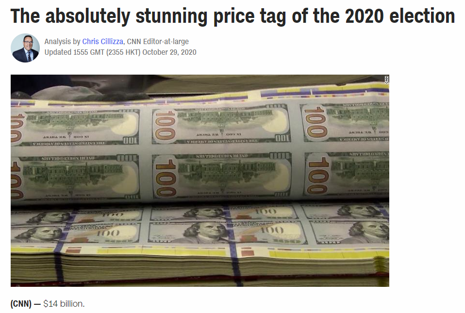 美国政界涉及金额特别巨大,且与欧洲不同,几乎所有巨富都会进行政治捐款。尽管美国人口只有英国的5倍,但2016年美国大选约65亿美元的花费,是次年英国大选花费的百倍有余。(译者注:根据CNN报道,2020年美国大选费用直接翻倍,来到了140亿美元。)