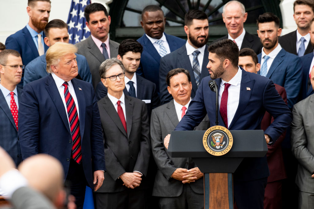 两年前,红袜再次夺得世界职业棒球大赛冠军,他们也照例获得了造访白宫的权利。