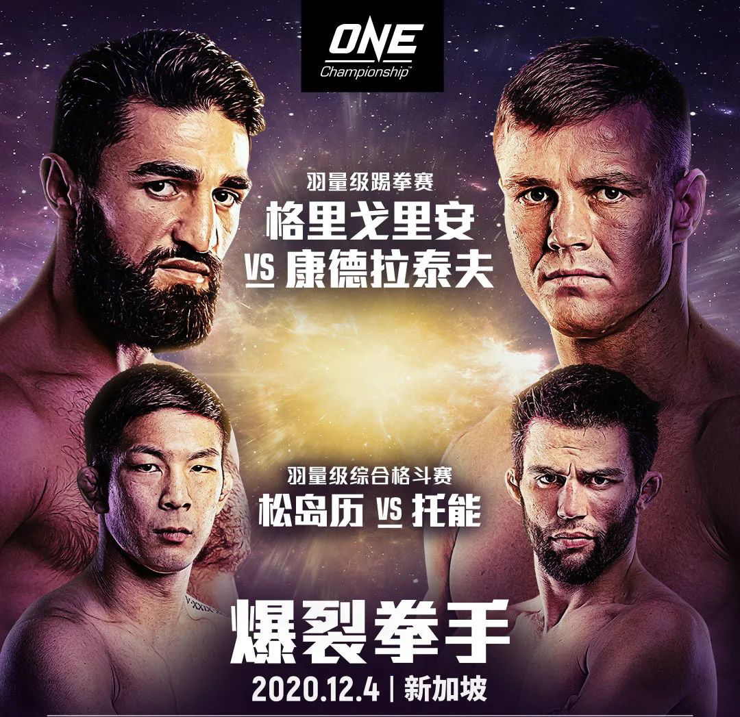 羽量级排名第三的“天赐之子”松岛历对战排名第五的缠斗系高手“狮子杀手”加里-托能。前者有着12胜4负的职业战绩,并在2019年8月挑战了羽量级当时的世界冠军阮马丁。自从输掉金腰带挑战赛之后,松岛历不断磨练自己,希望再次冲击金腰带。