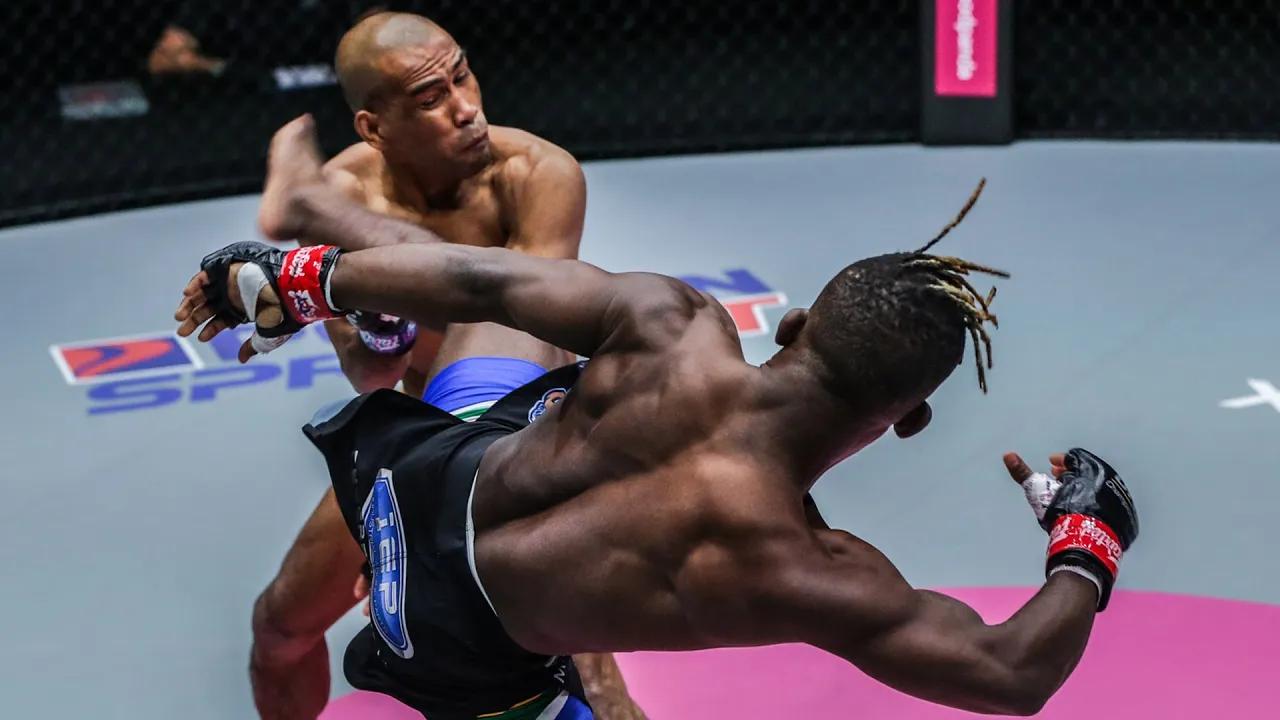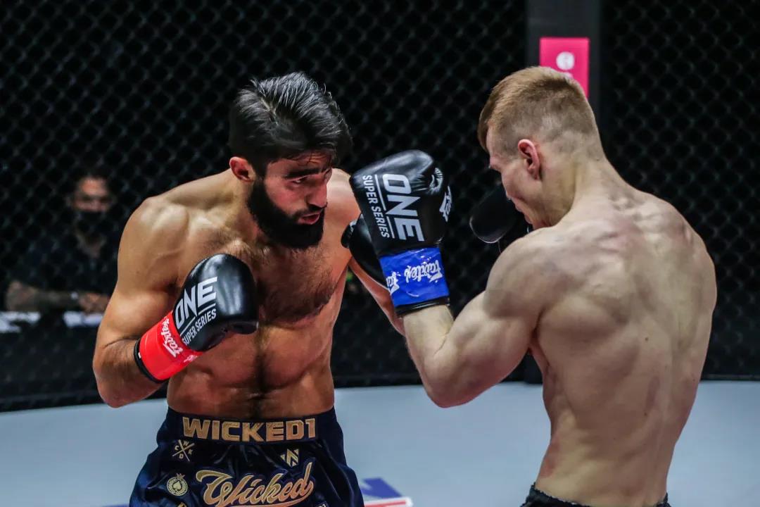 踢拳轻重量级迎来一场巨兽之战,由于轻重量级踢拳世界冠军罗曼·凯克利亚成了新冠密切接触者,必须进行隔离,原本要挑战冠军的穆拉特·艾贡不得不临时更换对手,挑战巴西踢拳名将安德森·席尔瓦。首秀急于证明自己的艾贡开场主动进攻,短平快的摆拳打得席尔瓦节节后退,不过他也暴露出防守漏洞大,体能储备不足的缺点。因此第二回合席尔瓦抓住机会左摆拳击倒艾贡,挽回了一些劣势,眼看胜利果实不保的艾贡末回合再爆发一波,点数上取得领先,判定赢下ONE首秀。
