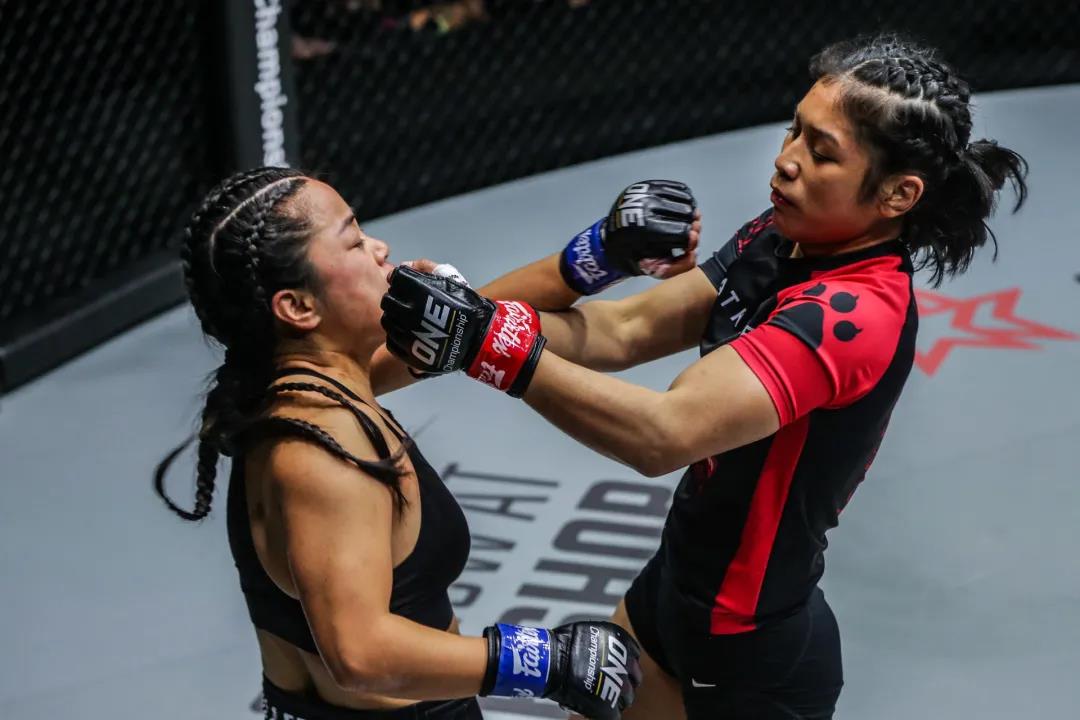 另一场女子原子量级综合格斗赛,在越南裔女将阮碧和马来西亚女子综合格斗冠军吉辛·拉德赞之间进行。拉德赞技术全面,身高臂展占据绝对优势,阮碧力量更大,擅长站立打击。前两回合交锋,拉德赞距离控制出色,站立打击足以自保,武术散打摔法运用娴熟,进入地面还差点三角锁降服对手,阮碧受限于身材劣势,打击方面无法完全发挥。但她的意志和体能要优于对手,第三回合疯狂追分,最终双方打满全场,拉德赞凭借前两回合的巨大优势一致判定获胜。