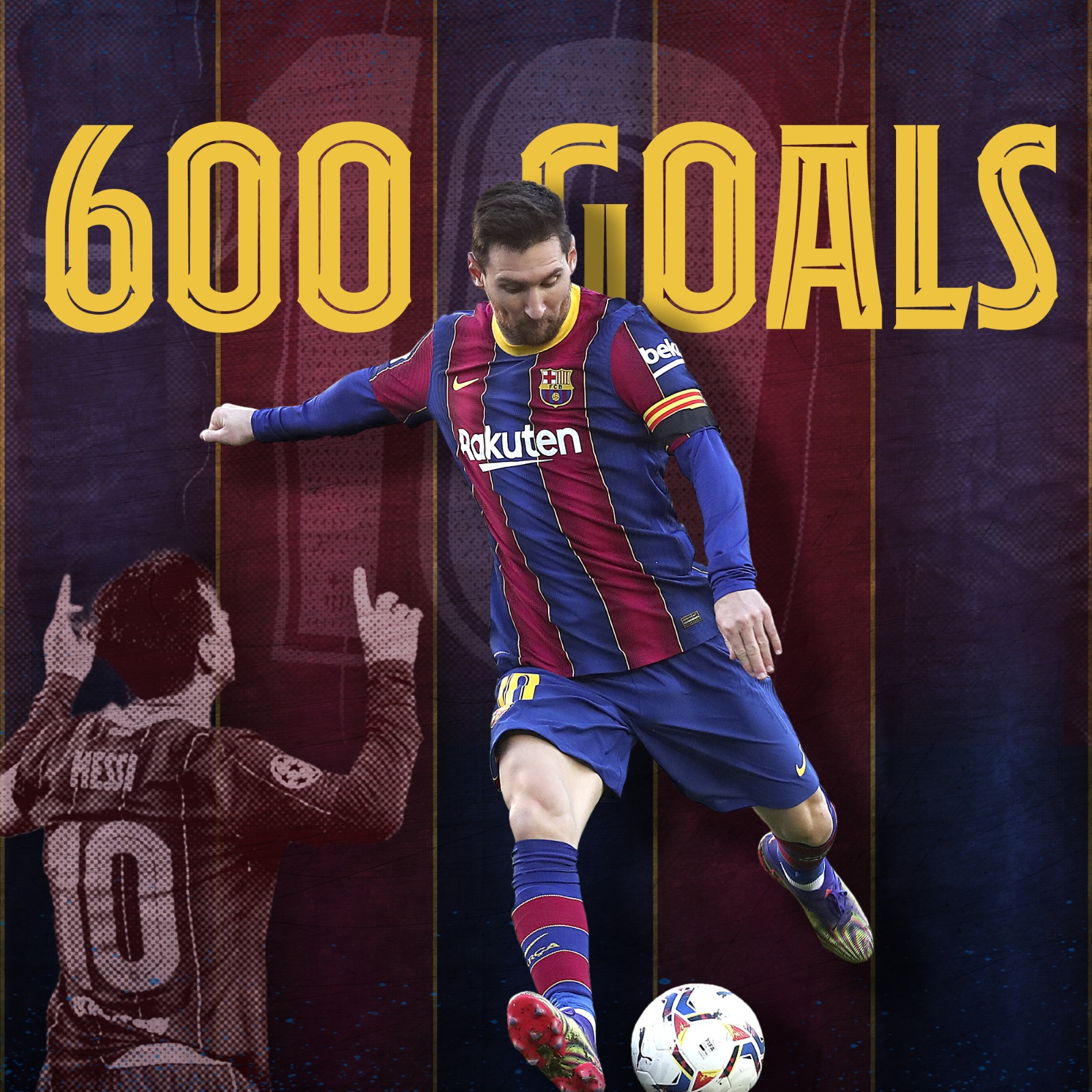 这是梅西身披巴萨10号战袍所打入的第600粒进球,巴萨官方也特地制作了相关海报来纪念这一时刻。