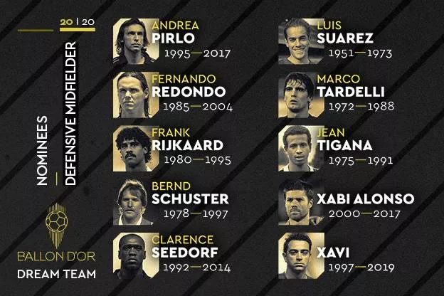 中场:迪斯蒂法诺,里卡杰尔德,皮尔洛,齐达内