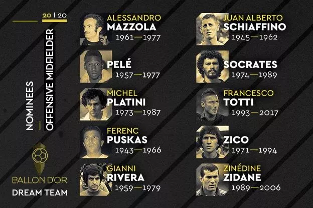 北京时间12月15日,《法国足球》评选的历史最佳11人阵容结果出炉。全球170位足球专家,其中包括140名记者参与了本次投票,阵型为3-4-3。贝利、马拉多纳两大球王领衔,C罗、梅西入选。