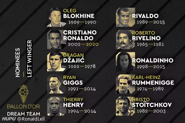 前锋:罗纳尔迪尼奥,克鲁伊夫,加林查