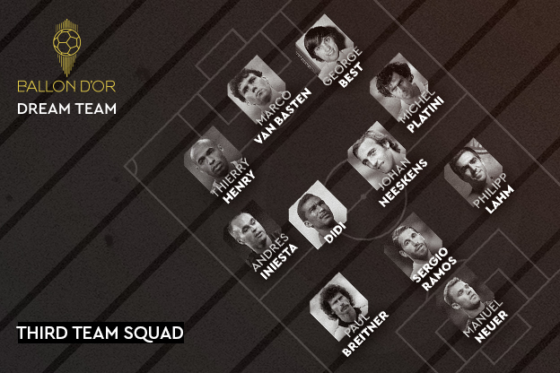 此外,法国足球还评出了历史最佳第二阵容和第三阵容。