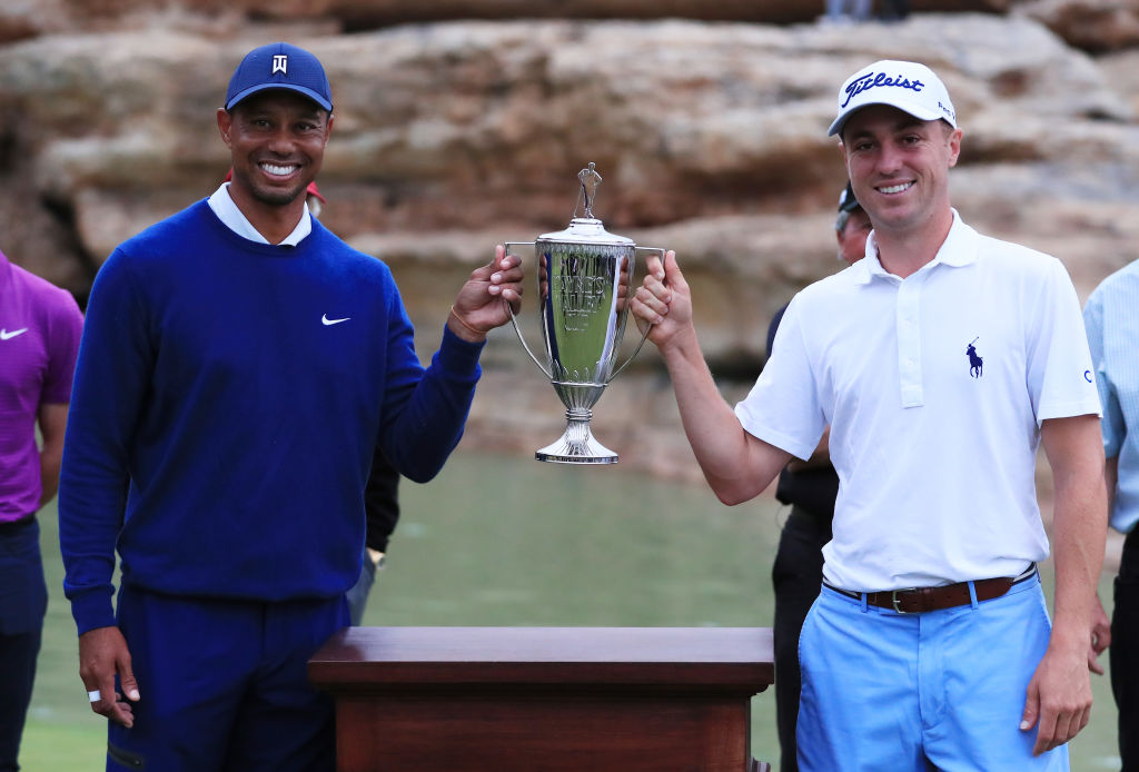 北京时间9月,佩恩山谷杯作为老虎·伍兹设计的首座公共球场揭幕赛。老虎·伍兹和贾斯汀·托马斯配对的美国队击败了罗里·麦克罗伊和贾斯汀·罗斯组成的欧洲队。本场比赛采用类似德莱杯和总统杯的形式进行比赛,伍兹与JT的完美配合帮助美国队取得了佩恩山谷杯的胜利。
