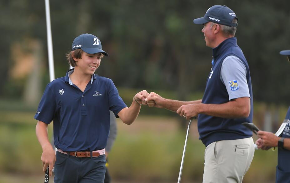 查理的场上举止太像他的父亲了。在第五洞打出了一杆后,当球还在空中时,他弯腰去抓球座。贾斯汀·托马斯和他的父亲迈克一起玩,他笑着说:“上帝,你真是太像你爸爸了。在等待托马斯推杆时,父子并排站着,右腿交叉在左脚踝上。