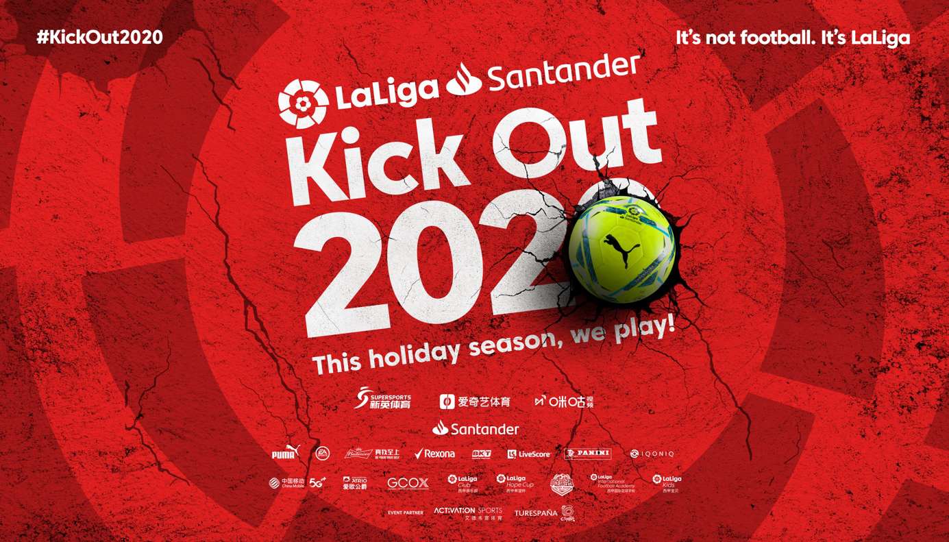 2020年12月19日,西班牙马德里 / 中国上海——为庆祝2020年的结束、展望充满曙光的2021年,西甲联盟宣布在全球30个国家发起以#KickOut2020为主题共计50场庆祝活动。同时,在今年圣诞、元旦双节期间,西甲联盟将展开横跨五个比赛日的西班牙足球甲级联赛日程,中国观众可以在爱奇艺体育收看相关比赛。