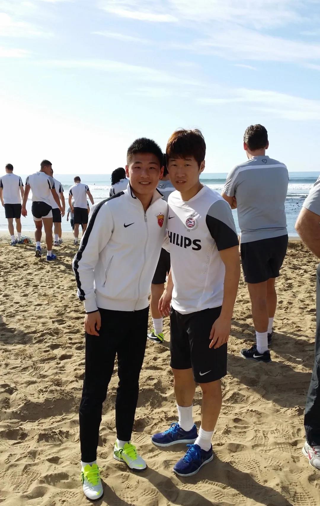第一次是在2014年初,当时还是徐导带着我们来冬训,印象深刻的是我们还遇到了埃因霍温队,我还留下了一张和朴智星的合影。