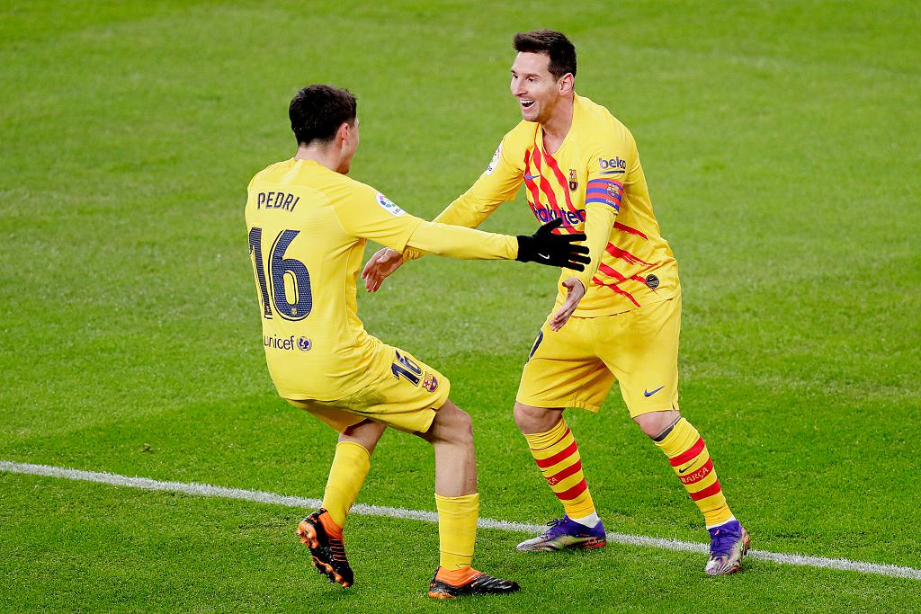 2020/21赛季西甲第2轮补赛——巴萨3-2客场逆转毕尔巴鄂竞技:上半时,伊尼亚基-威廉姆斯开场3分钟单刀闪击先拔头筹,梅西长传策动,弗朗基-德容助攻佩德里头槌顶空门扳平;贝尔奇切伤退离场,随后佩德里脚后跟妙传送出助攻,梅西推射近角反超比分。下半时,格列兹曼助攻梅西再入一球上演梅开二度,此外梅西还有两次远射击中立柱弹出,最后时刻穆尼亚因远射扳回一城>>