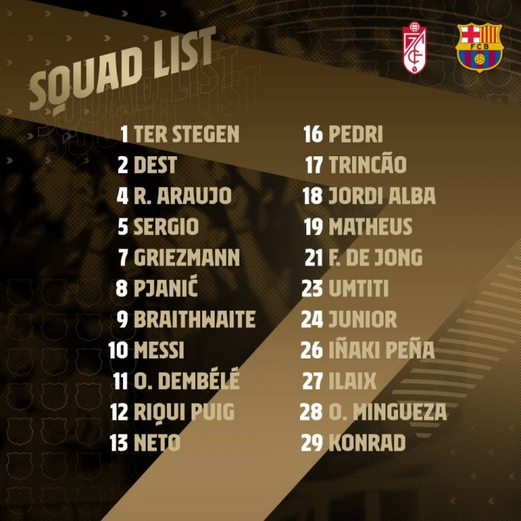 巴萨客战格拉纳达大名单:梅西领衔 小将莫里巴入选