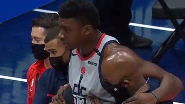 其中布莱恩特是在奇才不敌热火的比赛中,首节还剩10分07秒时,因抢篮板落地不慎90度崴脚,当时的他左腿已经无法承重,倒地手扶左膝伤处表情痛苦,后来直接被工作人员搀扶离场。