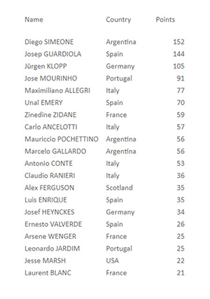 IFFHS 2011-2020十年全球最佳男子俱乐部教练排名