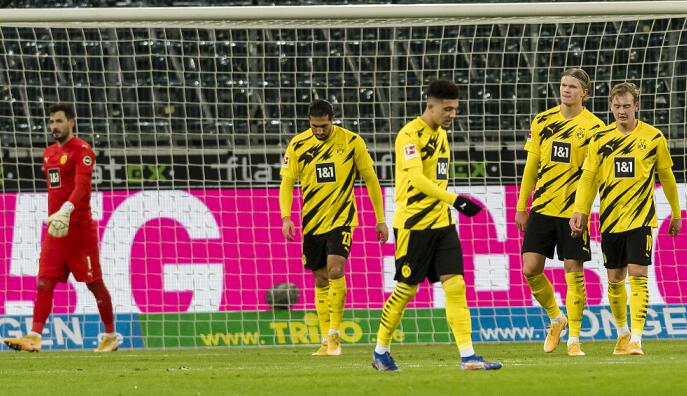 北京时间1月23日凌晨03:30,德甲第18轮,多特蒙德客场对阵门兴格拉德巴赫。上半时埃尔维迪、哈兰德梅开二度,桑乔送出两次助攻;下半时带刀后卫本塞拜尼兜射远角,小图拉姆头球攻门扩大比分。最终,多特蒙德客场2-4不敌榜首杀手,遭遇联赛两连败,多赛一场落后榜首拜仁10分。门兴也凭借这场胜利终结掉各项赛事连续12场不敌多特的记录。