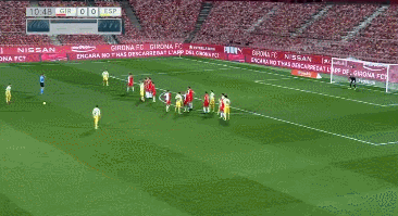 两分钟之后,赫罗纳战术角球,塞斯第二落点抽射被挡出底线。