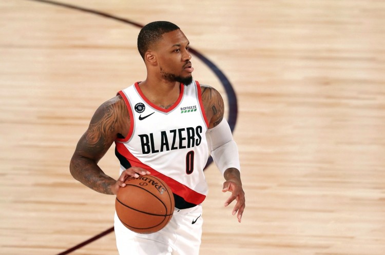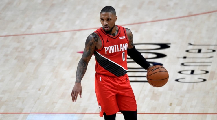 北京时间1月25日,NBA常规赛,开拓者对阵尼克斯。在比赛中的第二节,利拉德命中了个人本场的第三个三分。