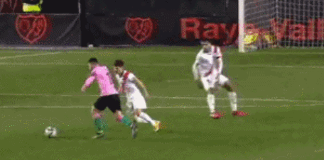第70分钟,德容中场送出手术刀直塞打穿巴列卡诺防线,格列兹曼杀入禁区左侧横传门前,梅西轻松打空门得手,巴萨1-1将比分扳平。