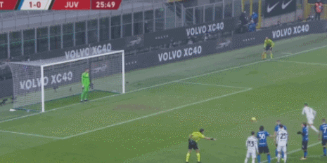第23分钟,阿什利-扬禁区内拉倒夸德拉多,裁判经过VAR回看后判罚点球并对阿什利-扬出示黄牌警告。C罗操刀劲射中路得手,尤文将比分扳为1-1。