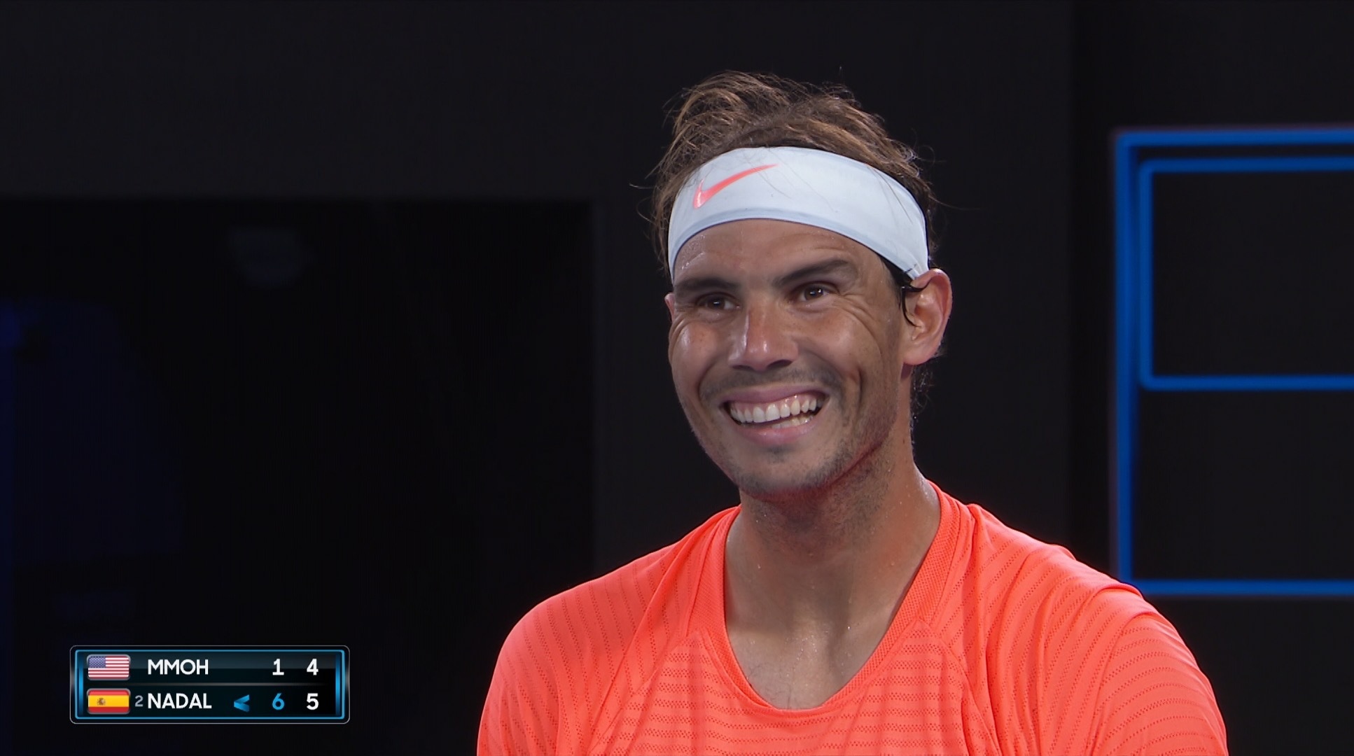 次盘第一分迈克尔莫尝试分点调动纳达尔,纳达尔回球失误,莫继续尝试分点上网成功拿下发球局。纳达尔随后轻松保发,莫似乎稍微适应纳达尔的旋转随后发球顺利保发。关键第5局纳达尔强势再次破发比分来到3-2领先,随后纳达尔依旧无压力保发,纳达尔尝试找到正手直线的手感,莫顺利保发。比分来到4-3纳达尔领先。纳达尔再次送出love game直落4分。