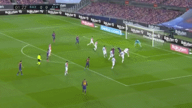 第29分钟,莫里巴禁区内得球后冷静横敲,特林康鬼魅杀出一脚兜射连穿两门击穿球网!1-0!巴萨取得领先!