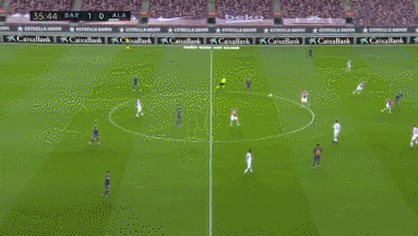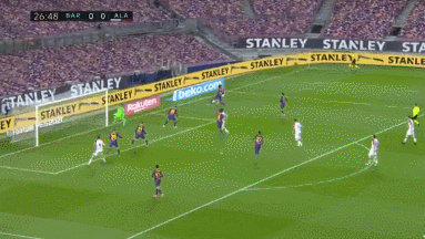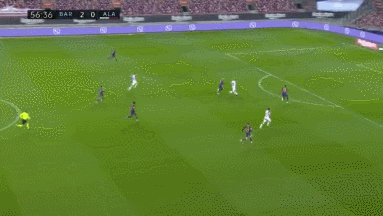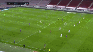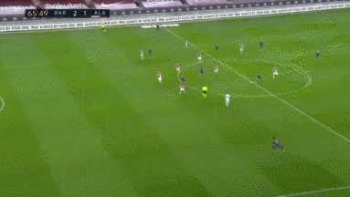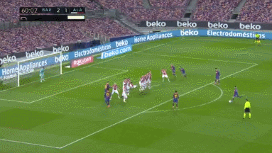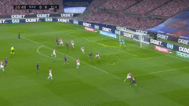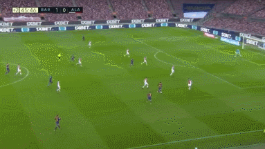 补时阶段,追平了哈维队史联赛出场纪录的梅西内切后远距离怒射,皮球击中立柱后弹入球网!2-0!巴萨两球优势进入中场休息!