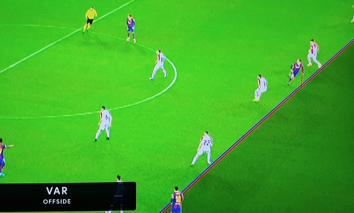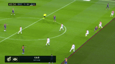 上半场第36分钟,格列兹曼接长传后单刀射门被扑,梅西补射破网!但VAR示意格列兹曼此球越位在先,梅西的进球无效: