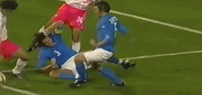 2002韩日世界杯上,韩国队在裁判的一路庇护下连续淘汰意大利和西班牙晋级四强。同意大利的1/8决赛中,李天秀在一次进攻中在马尔蒂尼已经抢先将球铲断解围的情况下抡起右脚狠狠踢在了马尔蒂尼的后脑勺上,但一旁的主裁判却对此视若无睹,甚至连一张黄牌都没有出示。更加令人感到愤慨的是,李天秀在此后多次接受采访时坦言自己当时是故意踢人的,而近期在参加一档综艺节目时他又提及了这一幕: