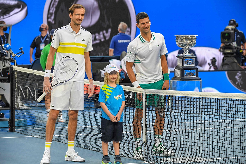 北京时间2月21日,2021澳大利亚网球公开赛进入第十四比赛日的争夺。压轴大戏男单决赛,赛会头号种子、卫冕冠军德约科维奇直落三盘以7-5 6-2 6-2击败了赛会4号种子、俄罗斯名将梅德韦杰夫,携澳网男单21连胜豪取澳网第九冠,职业生涯大满贯第18冠。这也是德约第二次在澳网完成三连冠大业!