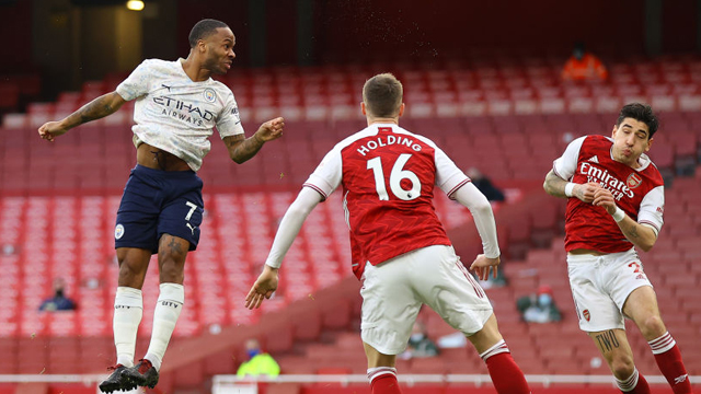 2' 马赫雷斯右路起传中,禁区内斯特林碰运气般的头球蹭射径直钻入死角!曼城取得梦幻开局,客场1-0领先阿森纳!