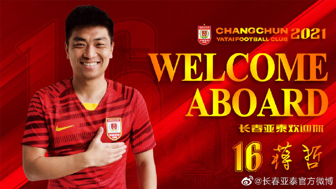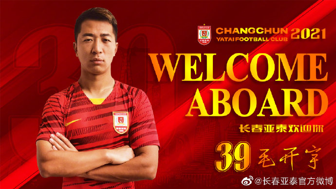 经友好协商,长春亚泰足球俱乐部与球员张瑀、毛开宇、蒋哲、王鹏签定工作合同,即日起,他们将分别身披长春亚泰队6号、39号、16号、25号战袍,征战2021赛季中超联赛。