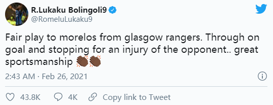 莫洛雷斯的这一举动收获了诸多赞许,主帅杰拉德赛后也对他表示了认可。此外,国米神锋卢卡库的弟弟正效力于安特卫普,观看弟弟比赛时,他也注意到了莫洛雷斯的动人之举:“莫雷洛斯的行为真是公平竞赛的代表,为受伤的对手中断进攻,伟大的体育精神。”