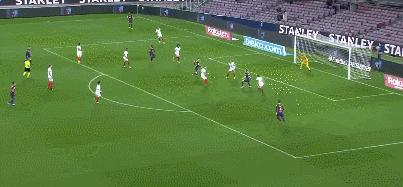 第71分钟,塞维利亚打出反击,明格萨在禁区内放倒了奥坎波斯,主裁判果断判罚点球。奥坎波斯亲自操刀打向左路但角度不够刁钻,皮球被特尔施特根倒地没收。