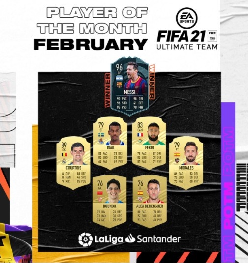 梅西在二月份的西甲比赛中交出4球1助攻的不俗数据,带领巴萨收获2胜1平。目前25战过后,巴萨16胜5平4负积53分,暂时排名西甲第二。