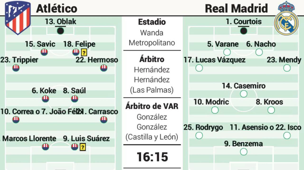 北京时间今晚23:15,西甲第26轮将迎来马德里德比,马竞坐镇主场。赛前,《阿斯报》预测了本场比赛的双方首发。