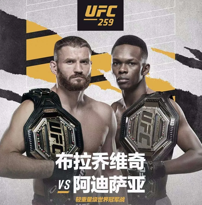北京时间3月7日,UFC259在美国拉斯维加斯开战,主赛为“黑龙”伊斯瑞尔-阿迪萨亚,轻重量级冠军扬-布拉乔维奇的轻重量级冠军头衔战。