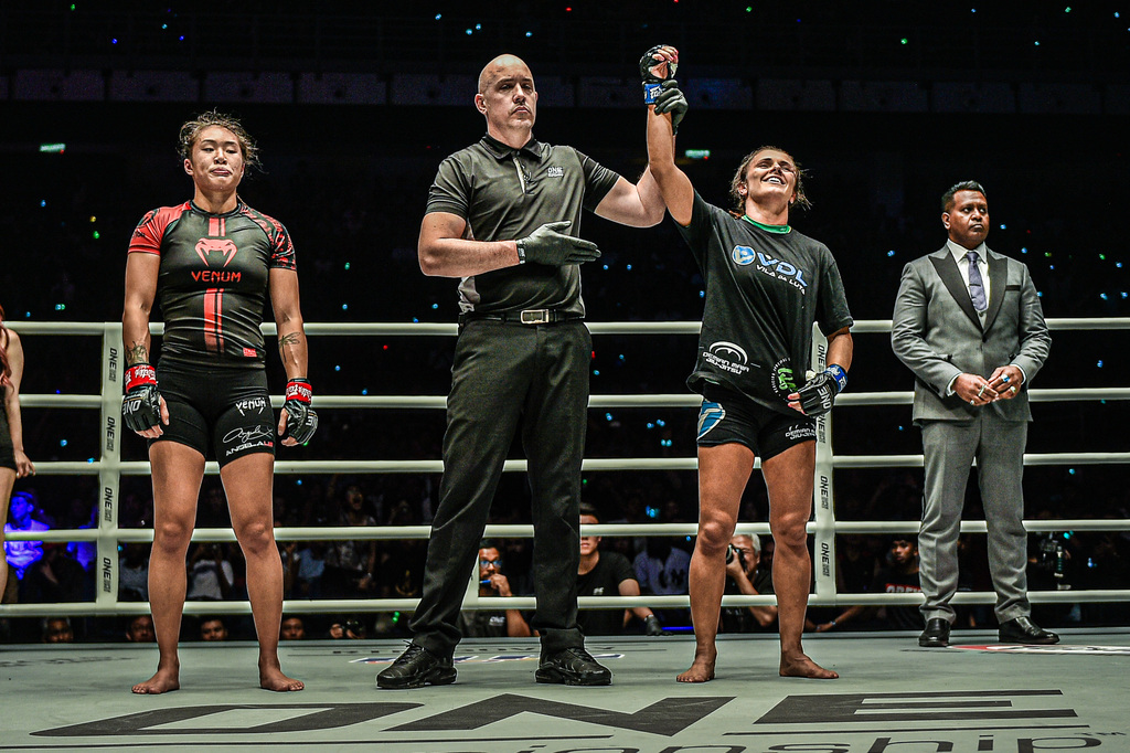 只要站在世界冠军的位置上一天,挑战就不会结束。近日,熊竞楠的下一场卫冕战计划正式宣布。5月28日她将与八届柔术世界冠军米歇尔-尼克里尼一决高下。而在同一天,原子量级八人巡回赛也正式打响,“沙漠之花”孟博将走上擂台,冲击金腰带。2018年,熊竞楠重拳KO张汇雯,拿到了ONE冠军赛草量级金腰带,在这之后她连续四次卫冕成功,击败了包括升重挑战的原子量级世界冠军“势不可挡”李胜珠,保持了ONE冠军赛女子草量级史上最多胜场记录。