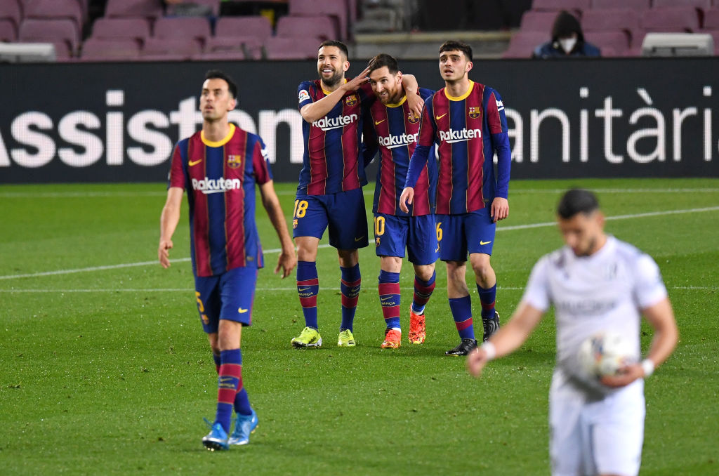 北京时间3月16日04:00,西甲第27轮,巴萨主场迎战韦斯卡。上半场,梅西世界波破门先下一城,格列兹曼扩大比分,特狮送点,拉法·米尔主罚命中扳回一城;下半场,梅西助攻明戈萨收获巴萨处子球后再入一球;最终,巴萨主场4-1战胜韦斯卡收获联赛4连胜,落后榜首的马竞4分。
