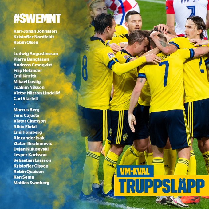 接下来的国家队比赛日中,瑞典将迎来与格鲁吉亚和科索沃的两场世界杯预选赛以及一场对阵爱沙尼亚的友谊赛。