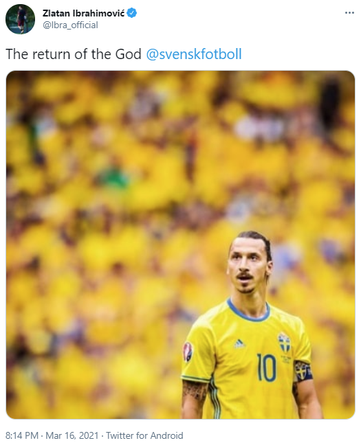 随后,伊布亲自在社交媒体上发文道:“上帝回来了!”