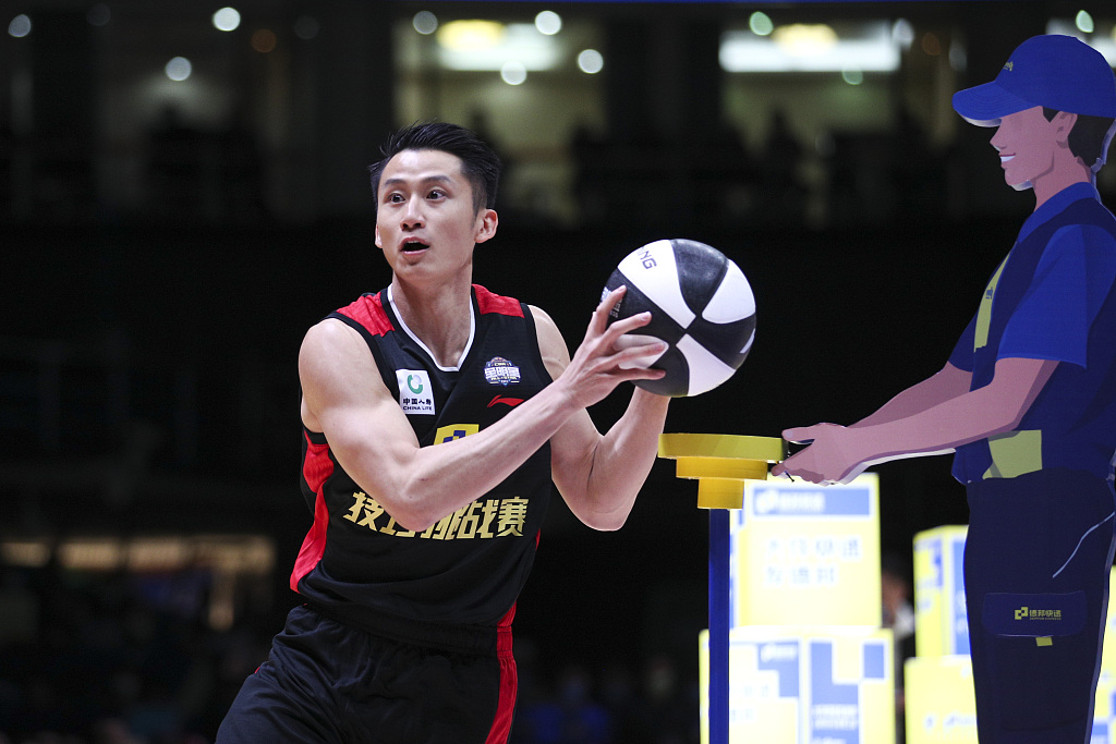 CBA全明星周末扣篮大赛决赛,第一轮开始,深圳队卢鹏羽率先出战,他带上了一位搭档,接队友抛出来的球,双手接球单手扣进,卢鹏羽第一扣得到41分。