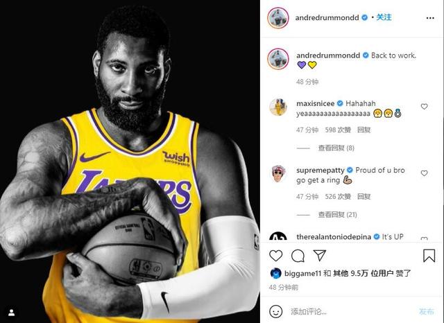 导语:虽然湖人队还没有宣布这一消息,但德拉蒙德在Instagram上发布了一张他穿着湖人队球衣的照片,标题是“重返工作岗位”。