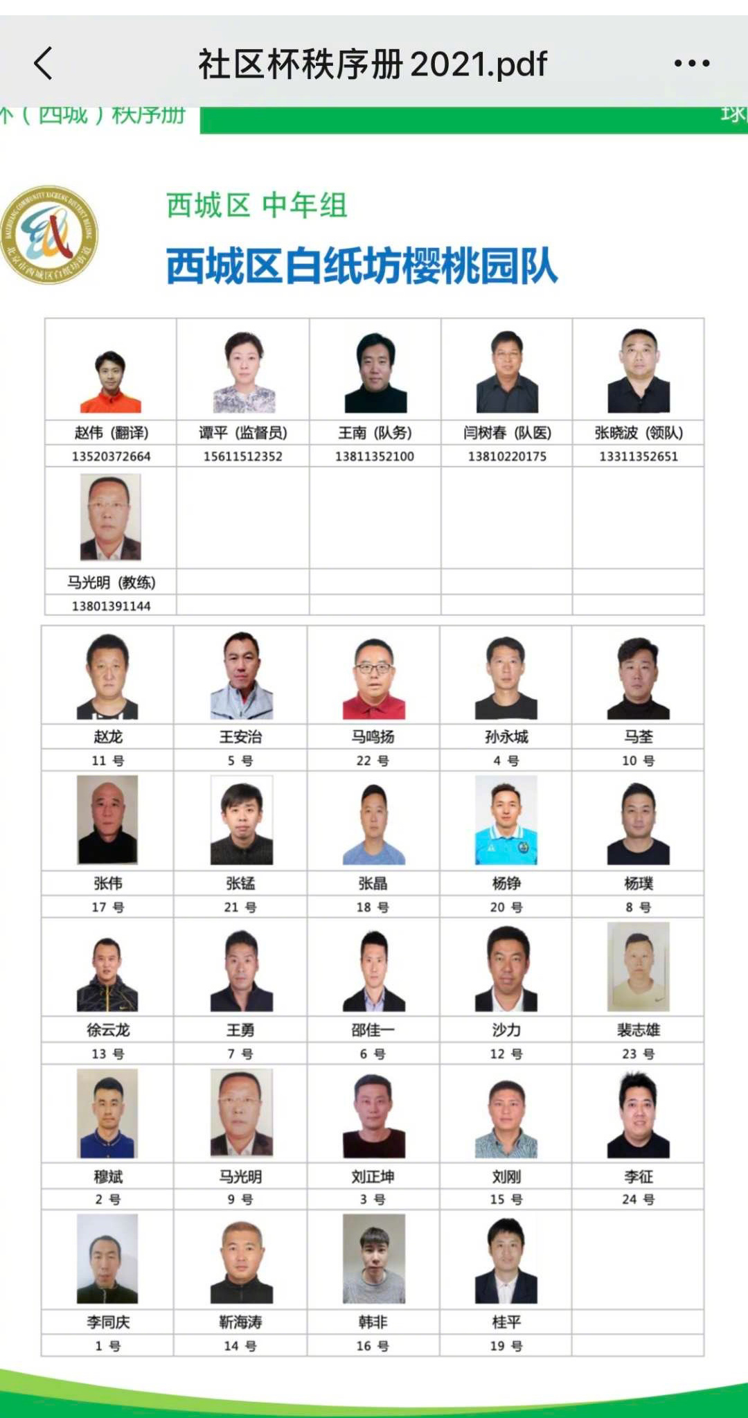 在2021年北京市社区杯秩序册中,中年组一队名为“西城区白纸坊樱桃园队”,参赛名单让人一看吓一跳。