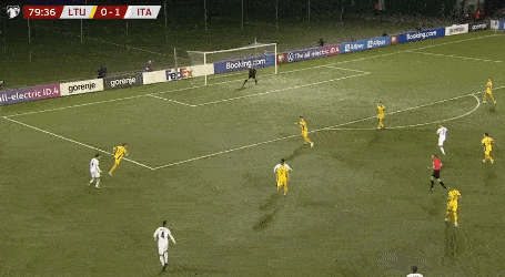 第94分钟,意大利获得点球!因莫比莱操刀主罚命中!立陶宛0-2意大利。