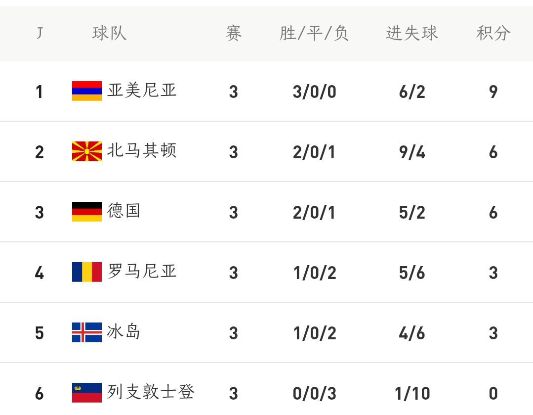本场比赛是德国队近20年第一次在世预赛中折戟。3轮小组赛过后,原本是组内实力最强的德国队已经跌至第三名,被亚美尼亚和北马其顿两支弱旅压制。