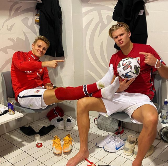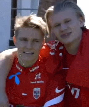 只是苦了哈兰德与厄德高这对好朋友,一人有望身披白衣征战西甲,另一人则将背起行囊离开伯纳乌。作为挪威双子星,二人在为国家队效力时培养出了深厚的友谊。在欧国联小组赛中,哈兰德曾上演帽子戏法,而他表态称愿意将比赛用球与自己的好友厄德高一同分享。而在厄德高当选挪威国家队队长时,哈兰德还曾拍摄视频动态向他表示祝贺。