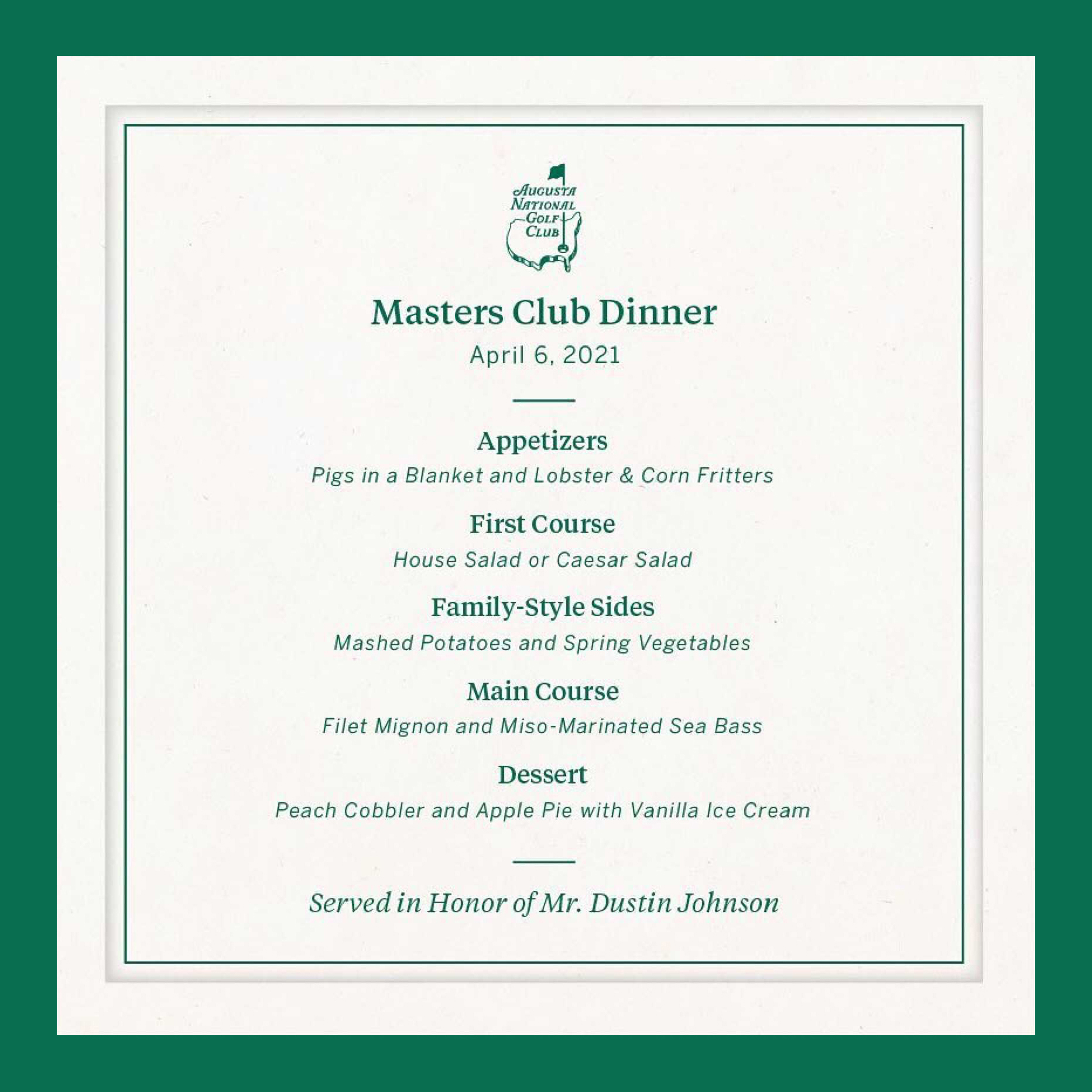 导语:美国大师赛冠军晚宴菜单曝光 菲力牛排仍是主菜